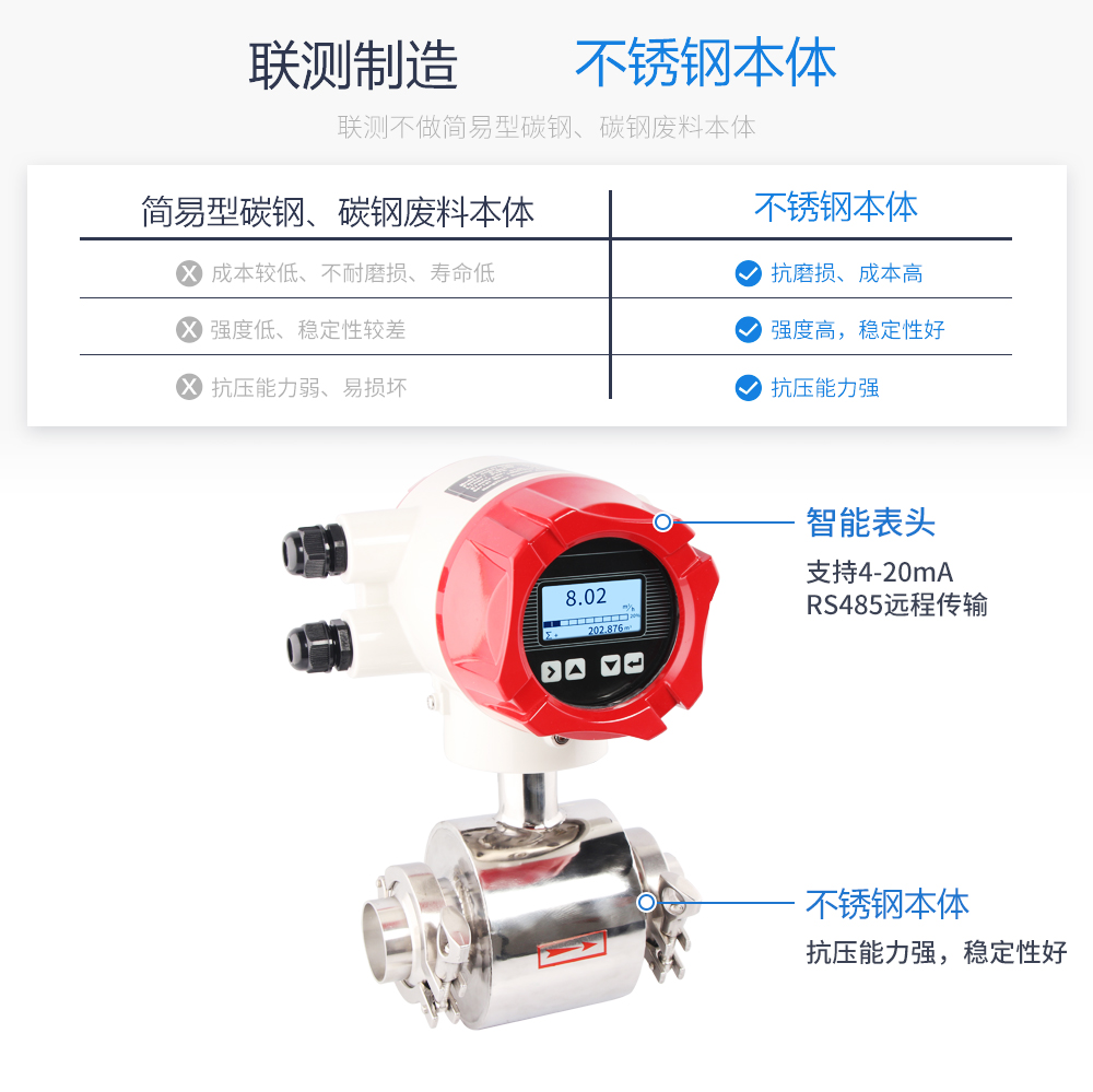 產(chǎn)品特點(diǎn):衛(wèi)生型本體、防浪涌抗干擾電路、多層防銹漆 測(cè)量精度:測(cè)量值的±0.5%(流速≥1m/s);測(cè)量值的±0.5%±2mm/s(流速<1m/s) 輸出信號(hào):電流(4~20mA)、脈沖、頻率、RS-485 防護(hù)等級(jí):IP65