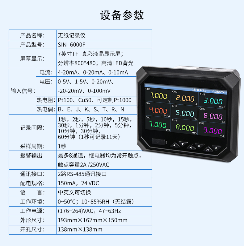 聯(lián)測(cè)_SIN-R6000F_新款無(wú)紙記錄儀144*144_全新36萬(wàn)能通道